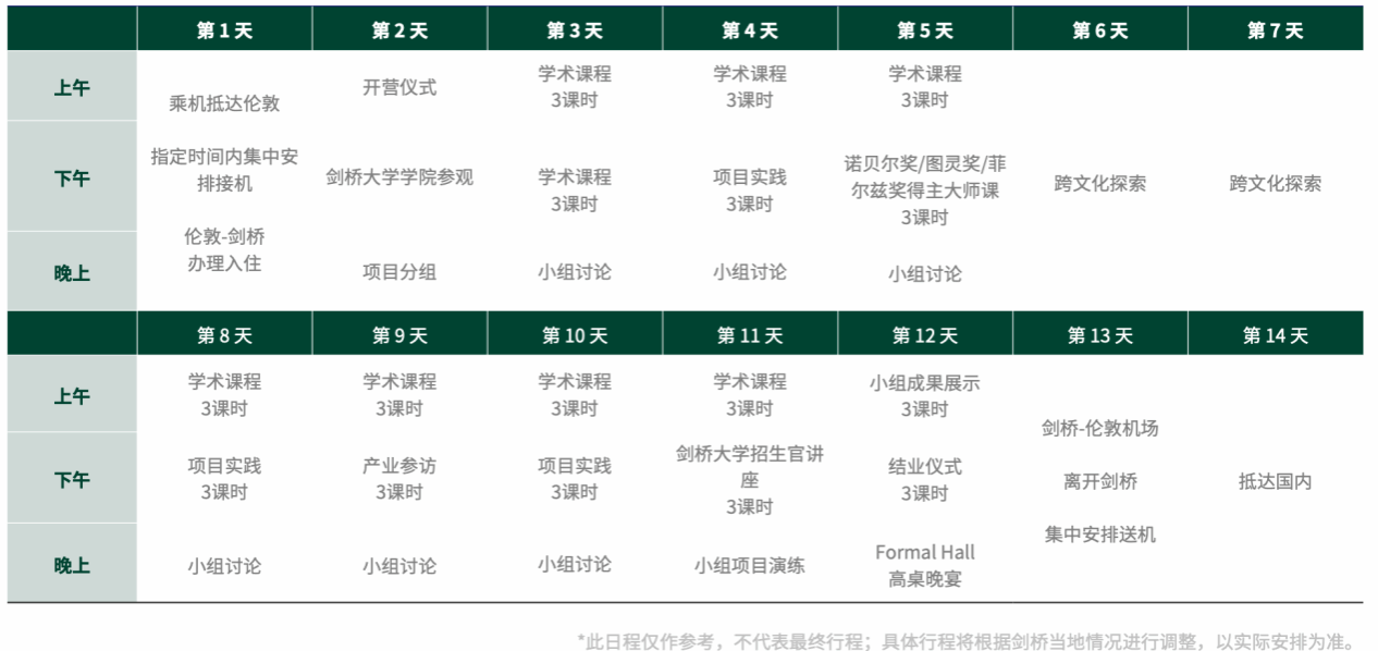 费用不包含:签证费、往返国际机票费用、在剑桥当地交通费及其它个人消费等。